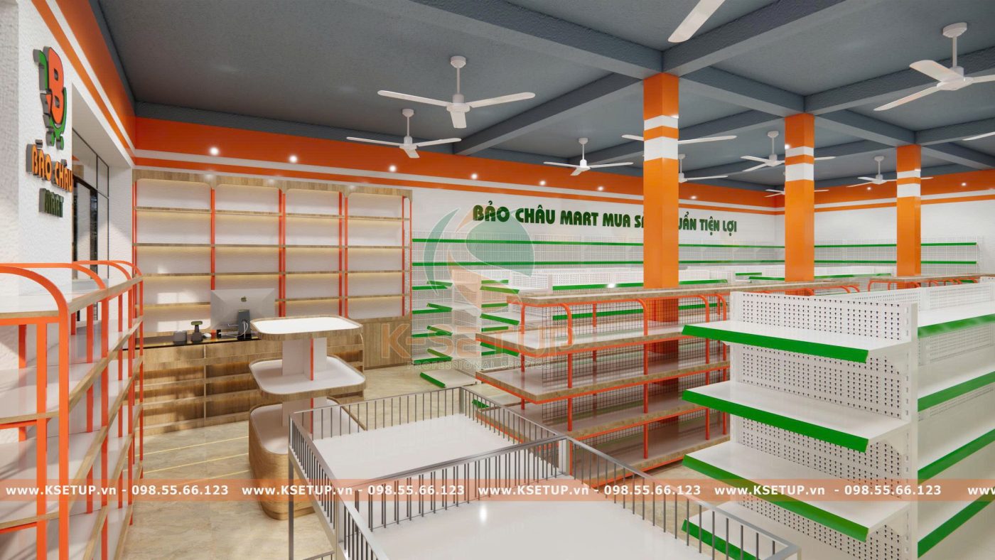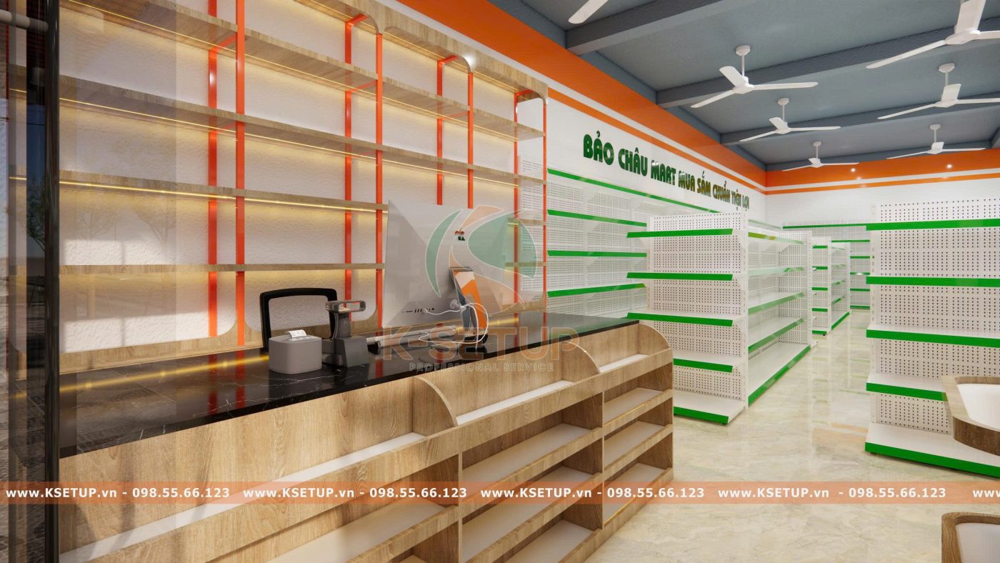 Dự án siêu thị Bảo Châu Mart được K-SETUP triển khai theo mô hình thiết kế – setup trọn gói từ A–Z, bao gồm toàn bộ các hạng mục từ tư vấn thi công mặt bằng, định hướng mô hình kinh doanh, thiết kế 3D siêu thị cho đến thi công hoàn thiện. Đội ngũ K-SETUP trực tiếp thực hiện lắp đặt hệ thống giá kệ, bố trí ngành hàng, setup trưng bày sản phẩm và sắp xếp hàng hóa theo tiêu chuẩn bán lẻ hiện đại. Nhờ quy trình đồng bộ và chuyên nghiệp, chủ đầu tư có thể tiết kiệm thời gian, tối ưu chi phí và sẵn sàng vận hành siêu thị ngay sau khi hoàn thiện. Đây chính là lợi thế của giải pháp setup siêu thị trọn gói mà K-SETUP đang triển khai trên toàn quốc.