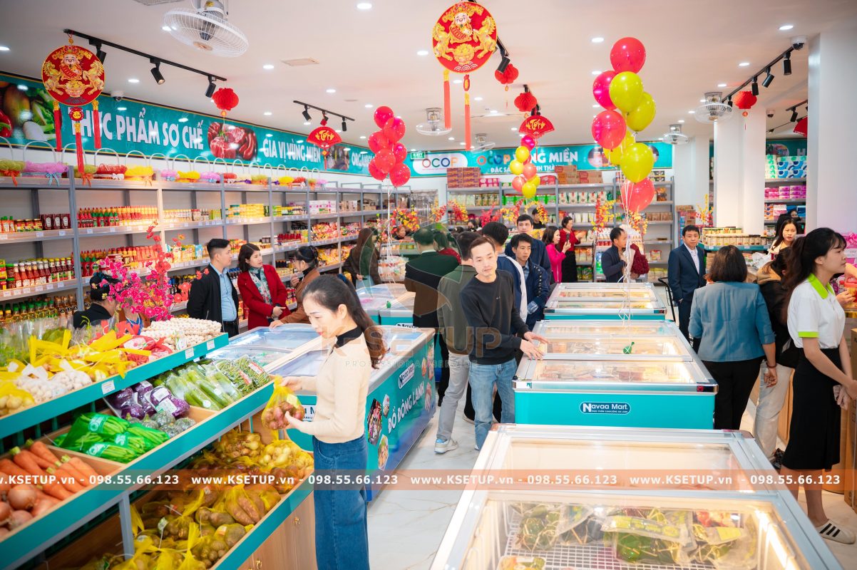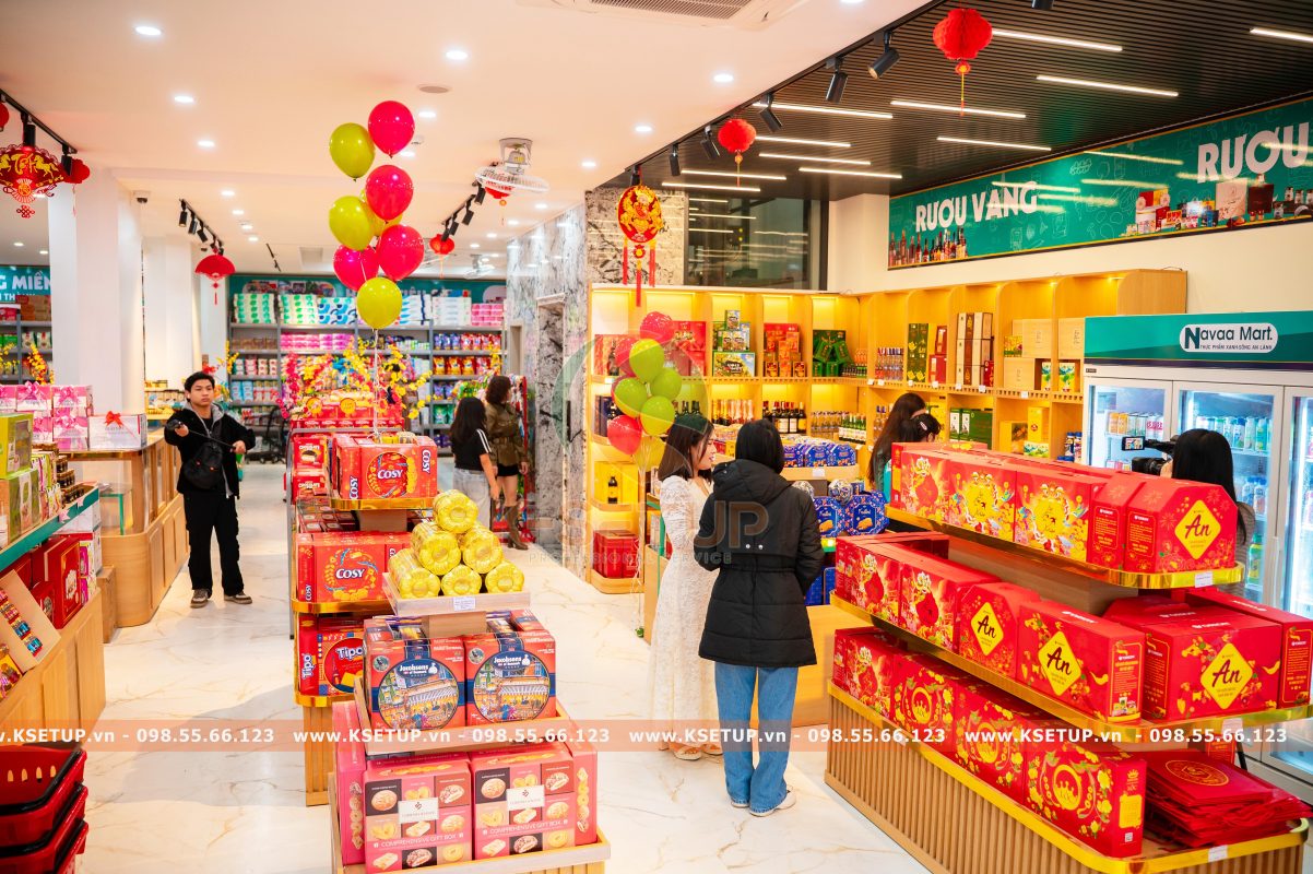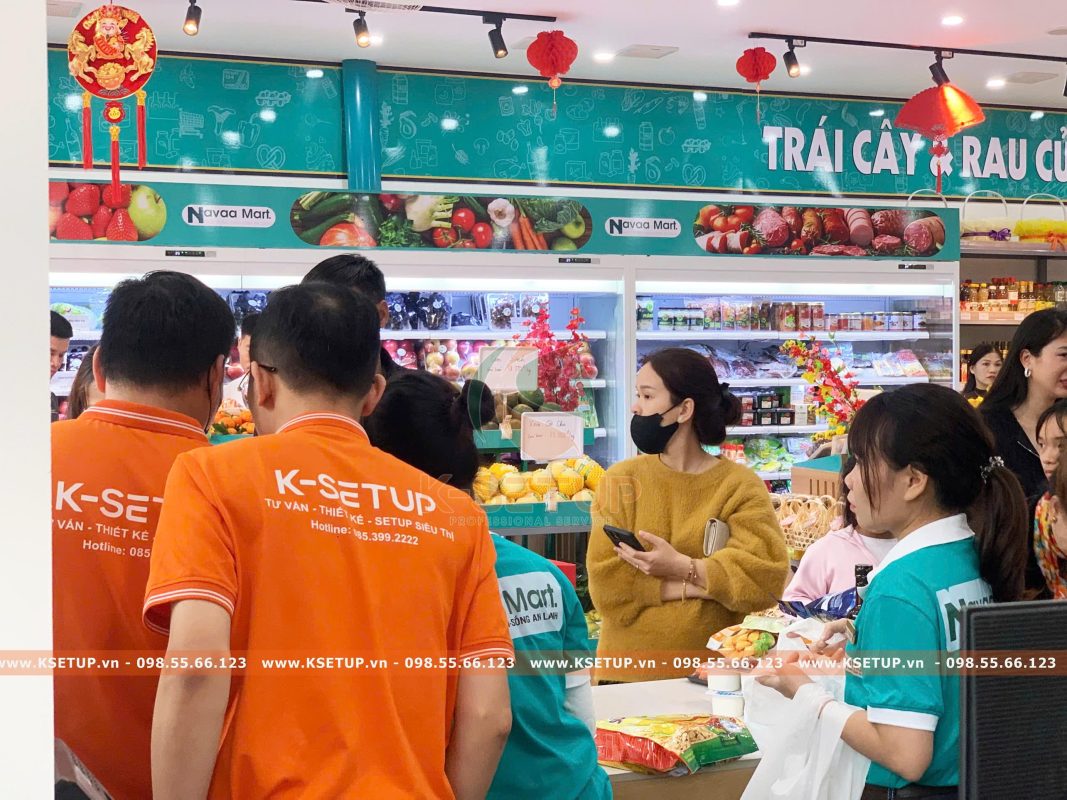 Để tạo nên một siêu thị Navaa Mart có bước khởi đầu thành công vượt ngoài mong đợi, đội ngũ K-Setup đã đồng hành xuyên suốt ngay từ những ngày đầu tiên. Từ khâu thiết kế mặt bằng khoa học, thi công nội thất – giá kệ chuyên nghiệp, đến tư vấn chọn lọc nguồn hàng phù hợp và setup trưng bày hàng hóa theo mô hình siêu thị hiện đại, mọi hạng mục đều được triển khai bài bản và tối ưu hiệu quả kinh doanh. Chính sự đồng hành trọn gói này đã giúp Navaa Mart nhanh chóng tạo dấu ấn chuyên nghiệp và thu hút khách hàng ngay từ ngày khai trương.