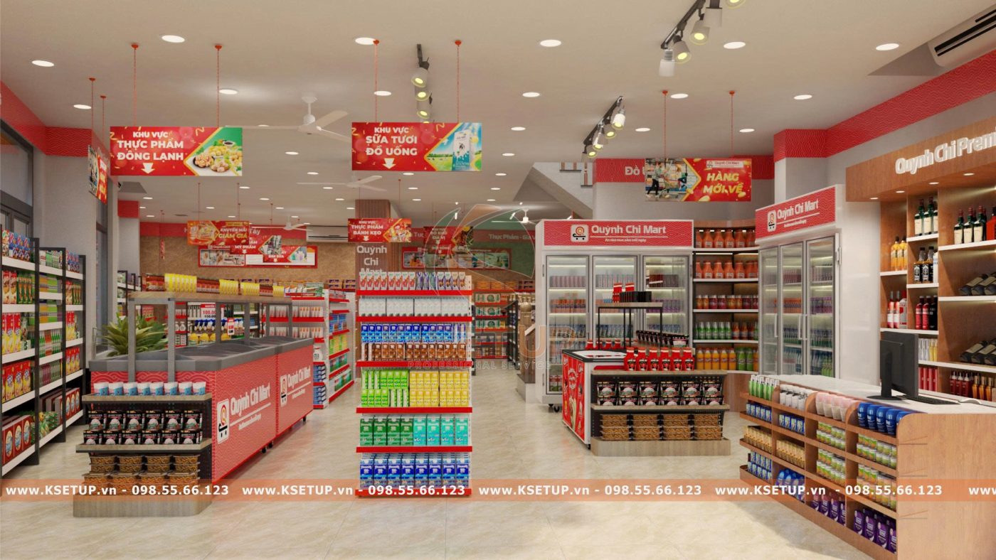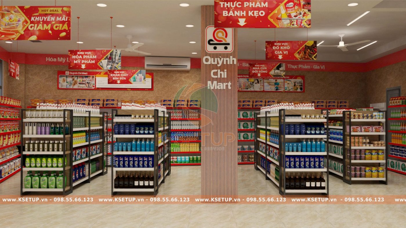 Tháng 12 năm 2025, Công ty K-SETUP vừa cho ra mắt bộ sưu tập thiết kế 3D siêu thị mới nhất – Quỳnh Chi Mart – tại Hoa Lư, Ninh Bình. Thiết kế mang phong cách khác biệt và nổi bật, phù hợp với mô hình xây dựng mặt bằng hiện trạng, đảm bảo tính thống nhất và hiệu quả vận hành cho chủ đầu tư.