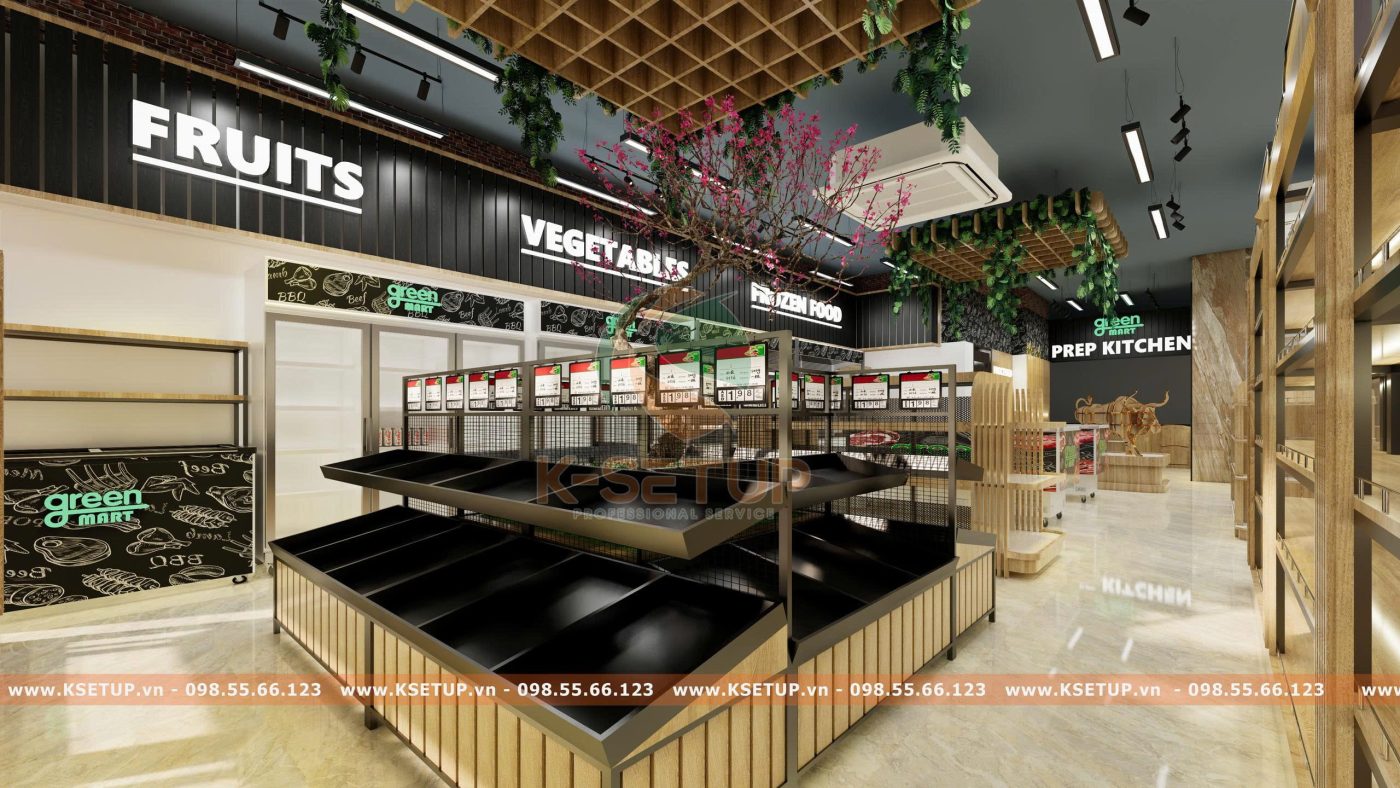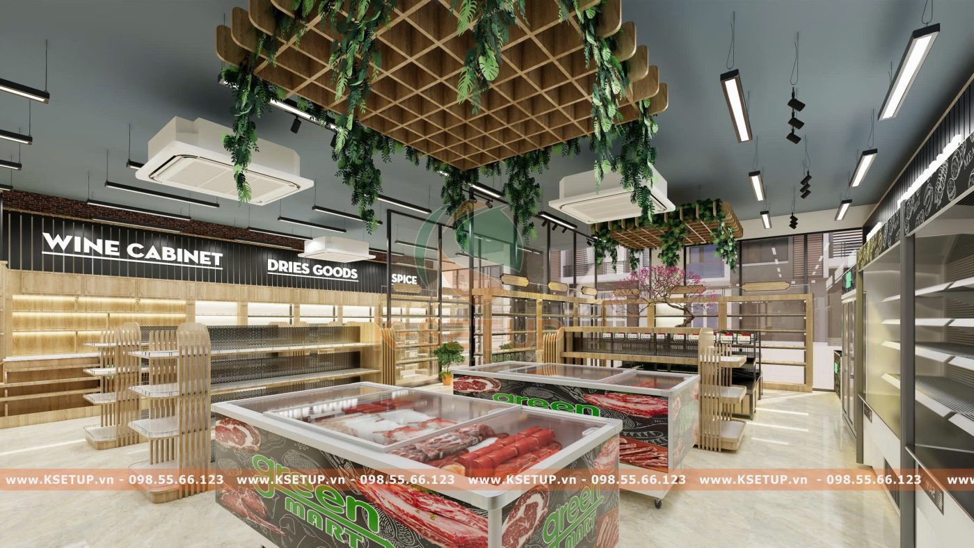 Đầu năm 2026, siêu phẩm thiết kế 3D mô hình siêu thị kết hợp thực phẩm sạch Sky Mart tại Lào Cai đã được đội ngũ chuyên gia thiết kế K-SETUP nhanh chóng hoàn thiện ngay sau khi tiến hành khảo sát thực tế mặt bằng của chủ đầu tư. Đây là mô hình kinh doanh mới đang rất được ưa chuộng trên thị trường, lần đầu tiên xuất hiện tại thành phố Lào Cai. Việc kết hợp siêu thị tiện lợi với khu vực thực phẩm sạch giúp khách hàng dễ dàng tiếp cận các sản phẩm thực phẩm an toàn và có nguồn gốc rõ ràng trong cùng một không gian mua sắm. Mô hình này không chỉ đáp ứng xu hướng tiêu dùng hiện đại mà còn góp phần nâng cao chất lượng dịch vụ bán lẻ tại địa phương.