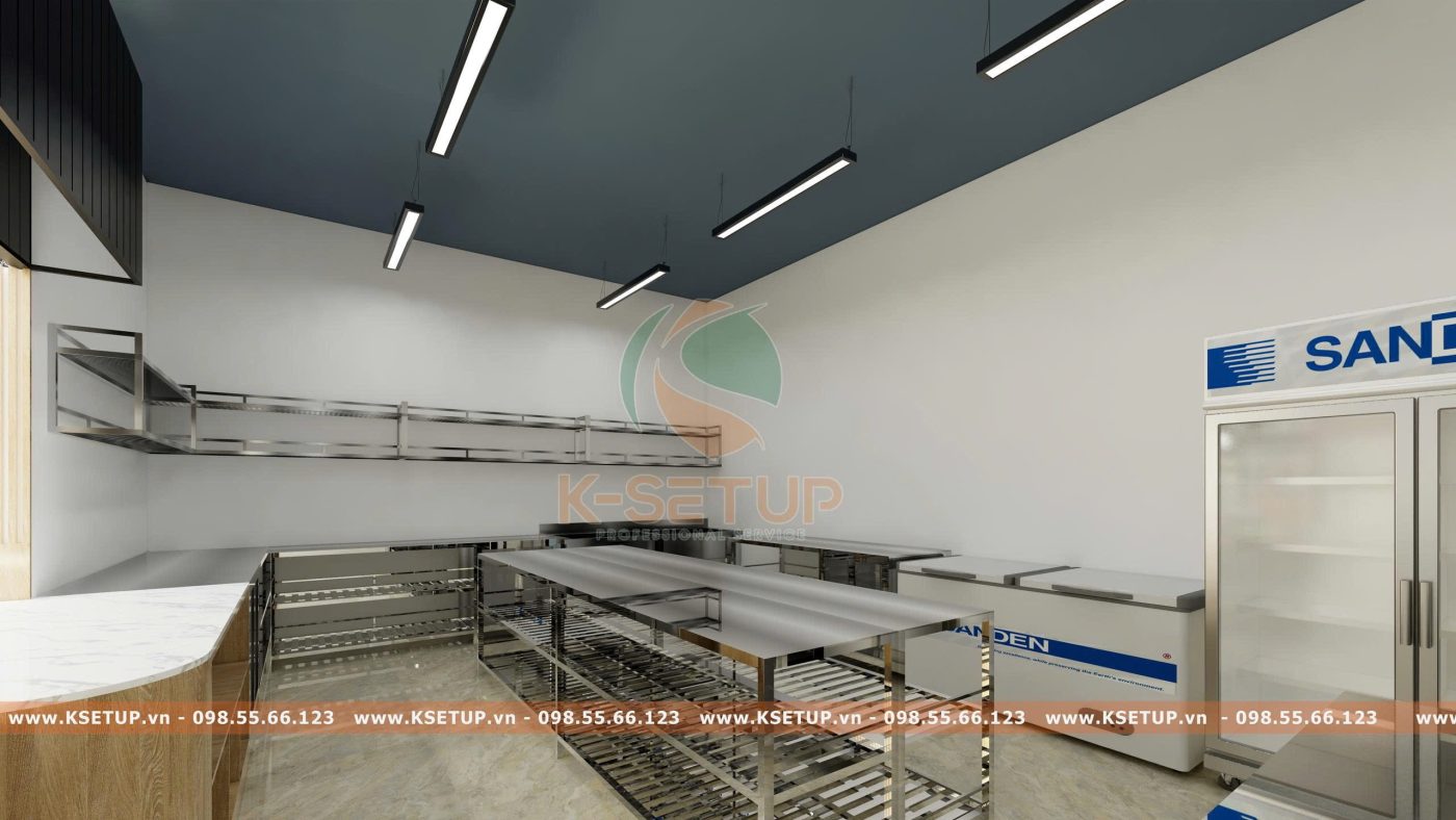 Đối với mô hình siêu thị kết hợp thực phẩm sạch, khu vực bếp sơ chế – chế biến đóng vai trò quan trọng trong việc phát triển các sản phẩm ăn liền, món sơ chế sẵn, từ đó giúp tăng doanh thu và đa dạng nguồn thu cho chủ đầu tư. Không gian bếp được thiết kế tách biệt, trang bị hệ thống bàn inox và thiết bị bảo quản chuyên dụng, đảm bảo quy trình chế biến an toàn vệ sinh thực phẩm. Cách bố trí khoa học cũng giúp quá trình sơ chế, chuẩn bị thực phẩm diễn ra nhanh chóng và thuận tiện trong quá trình vận hành.